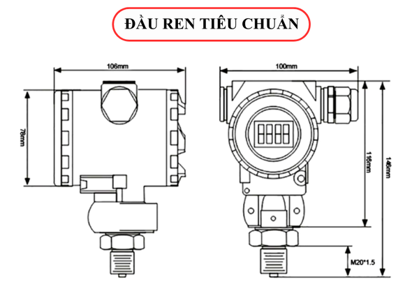 - Đầu ren tiêu chuẩn: Nhiệt độ làm việc từ -20°C đến 85°C.