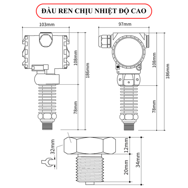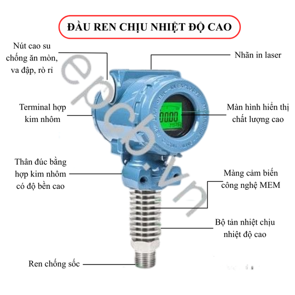 - Đầu ren chịu nhiệt độ cao: Thiết kế tản nhiệt chịu được nhiệt độ môi chất lên đến 200°C.