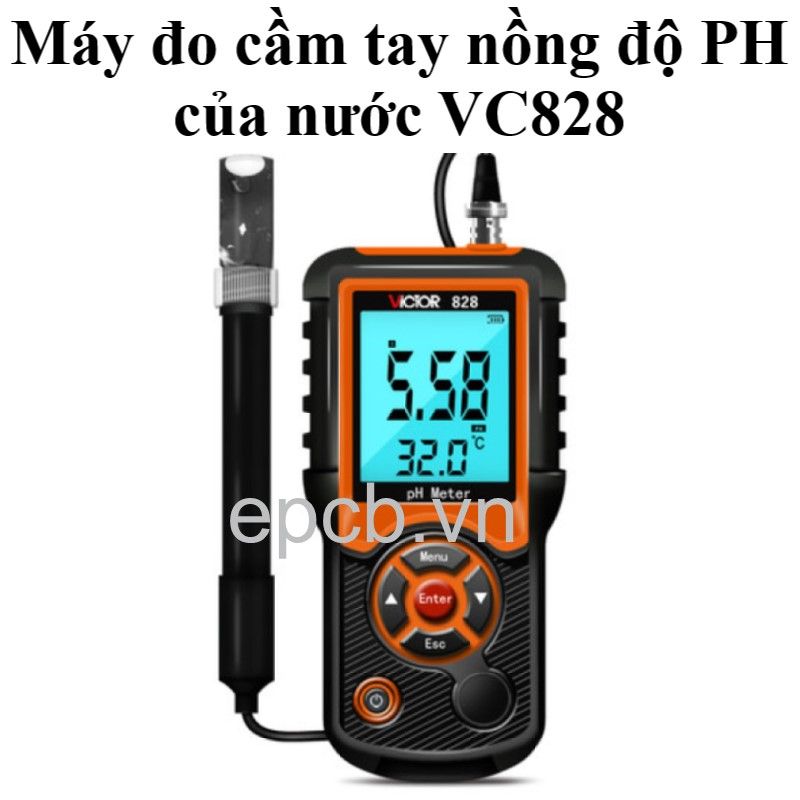 Máy đo cầm tay nồng độ PH của nước VC828 tích hợp đầu dò giúp đo độ PH nước thuận tiện, chính xác và nhanh chóng
