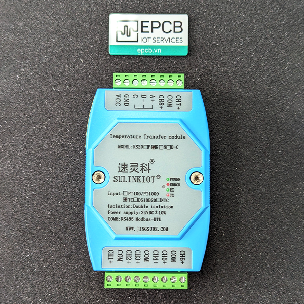 Module đọc nhiệt độ loại K 8 kênh ngõ ra RS20K-C giúp dễ dàng kết nối, lấy thông số, giám sát thông số nhiệt độ của các Cặp nhiệt điện R, J, K, S, T, E, B, N. Hỗ trợ kết nối và cấu hình trên PLC, PC.